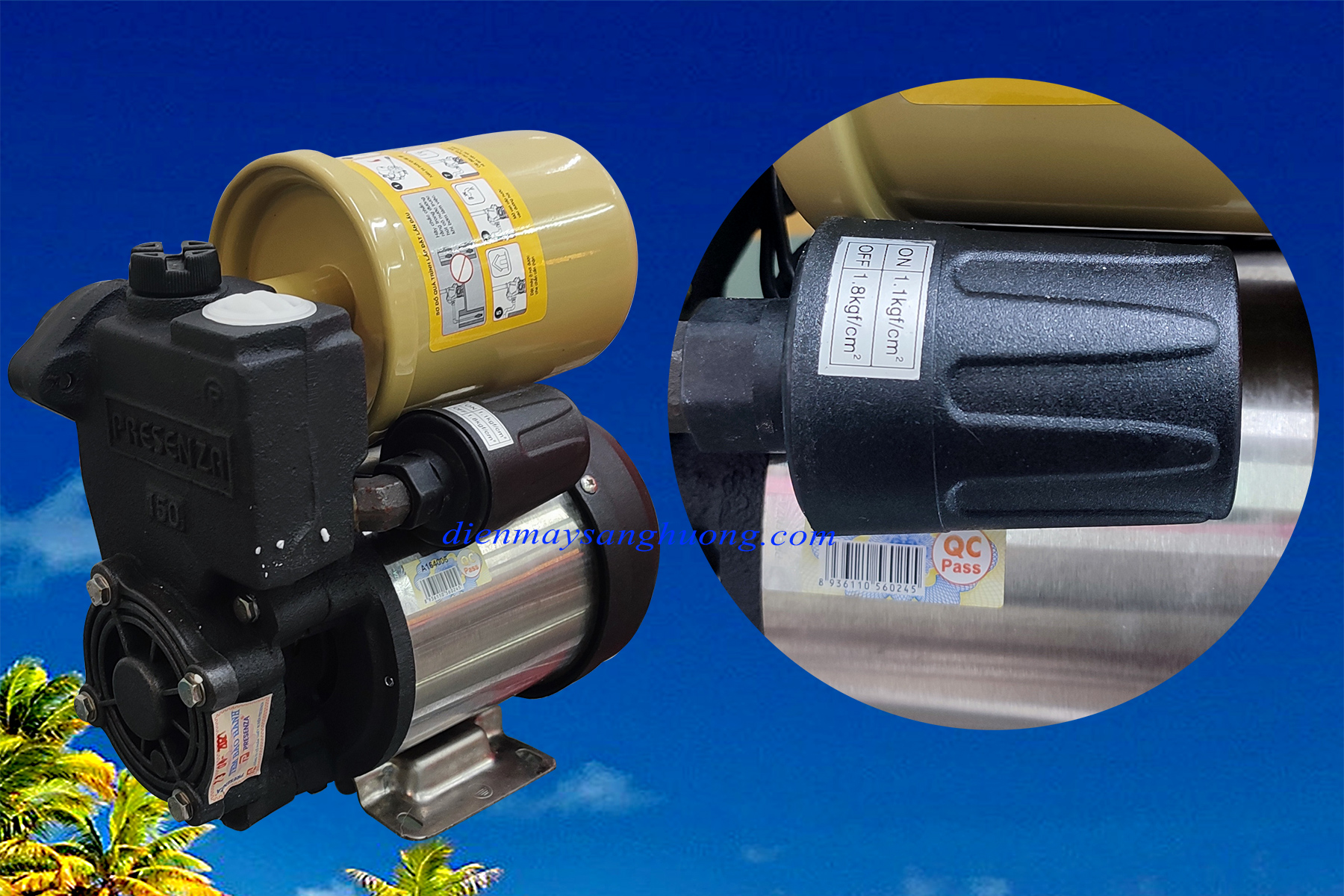 ✅ Rơ le tự ngắt điện khi áp suất nước >1.8kgf/cm³.