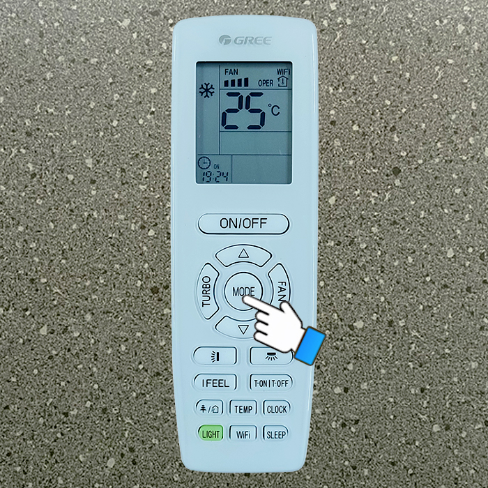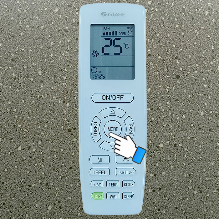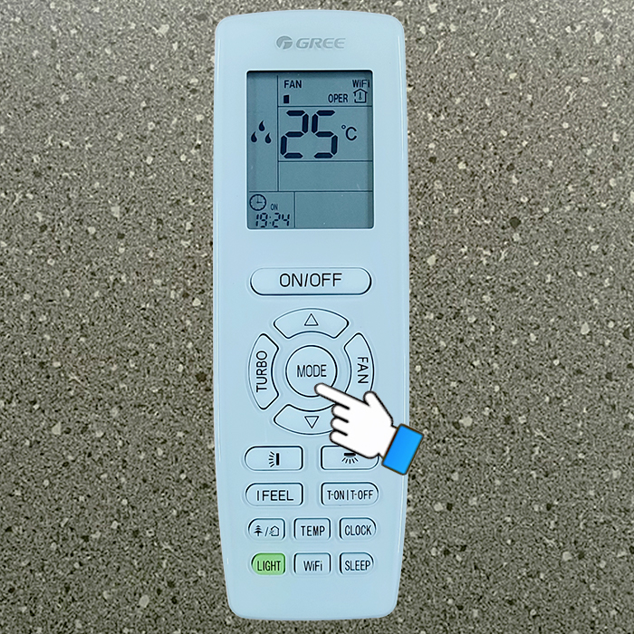 Bước 1: Nhấn nút MODE rồi chọn chế độ COOL.